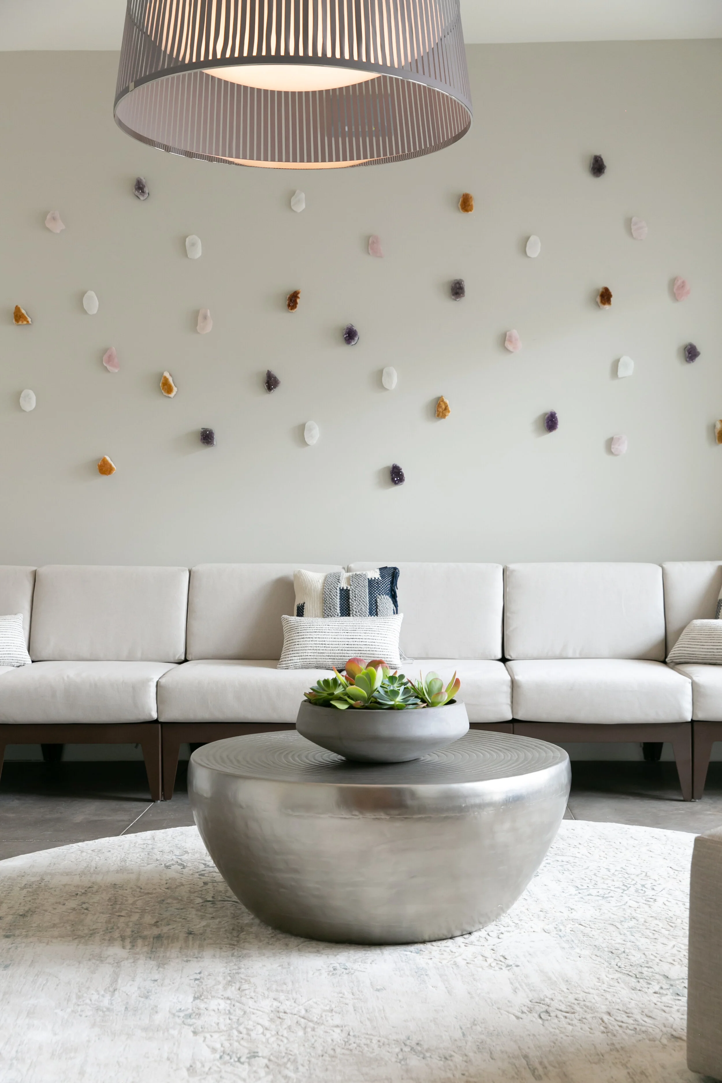 When considering the interior design concept for the spa, we took the approach of creating a harmonious ‘modern desert’ design which sought to both respect the existing building while providing an environment which is appropriate for the intended use. The monochromatic but textural color palette provides a visual sense of calm with subtle accents of soft color. The introduction of Native American elements speaks to a sense of place but without being thematic